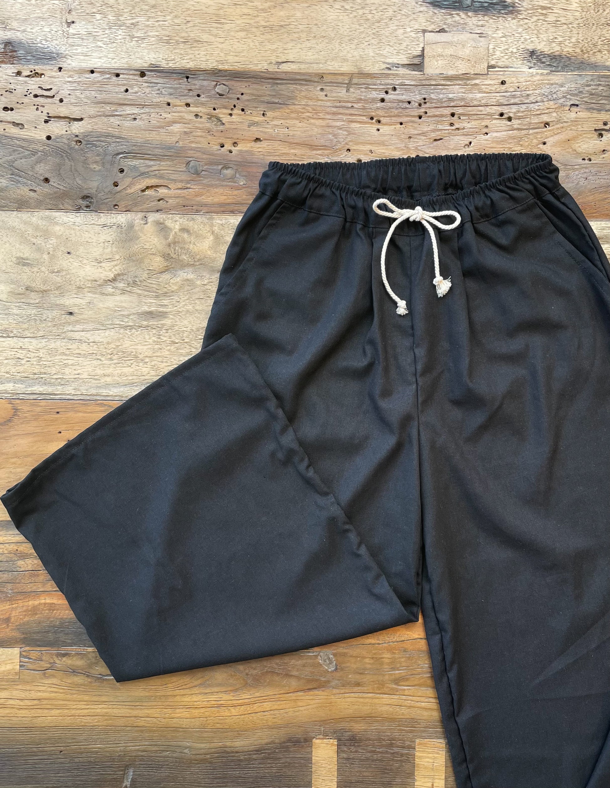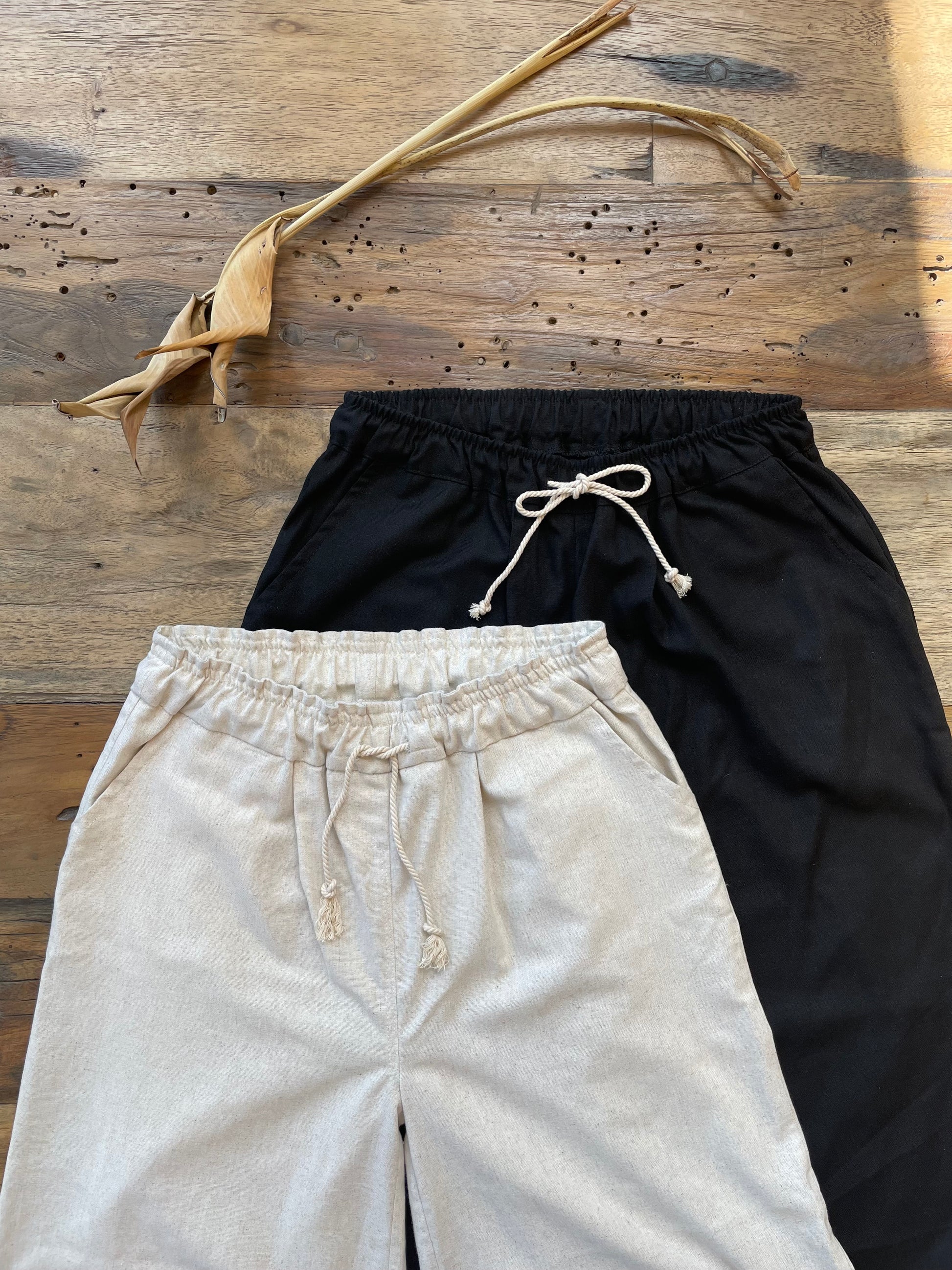 Pantalón de lino, pierna recta y tiro medio, tiene bolillos delantero y amarras para mayor comodidad